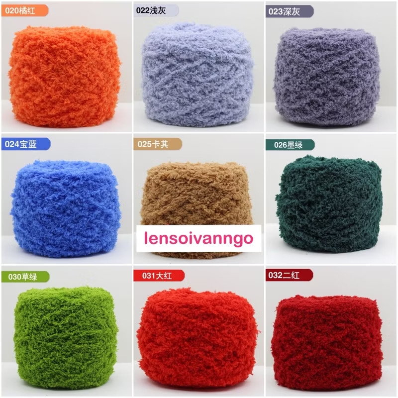 Len bông xù thích hợp đan móc mũ, khăn choàng, áo khoá, chăn....Sợi len to, giữ ấm tốt.