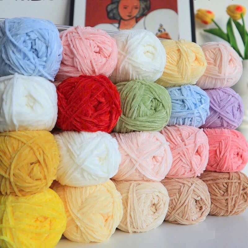 Len nhung 2mm thích hợp đan/móc thú bông size nhỏ, đan/móc váy áo, chăn mũ...