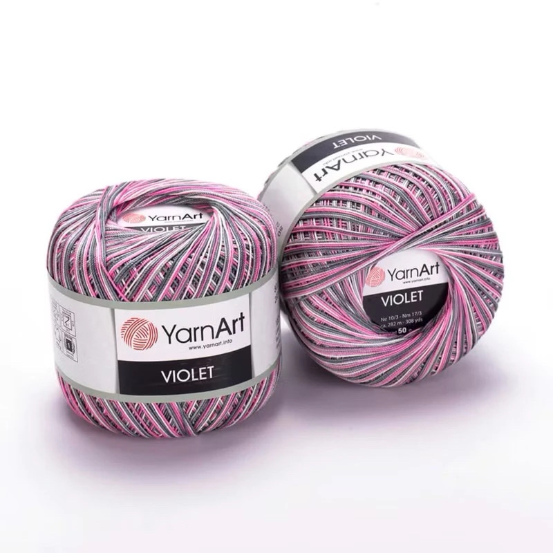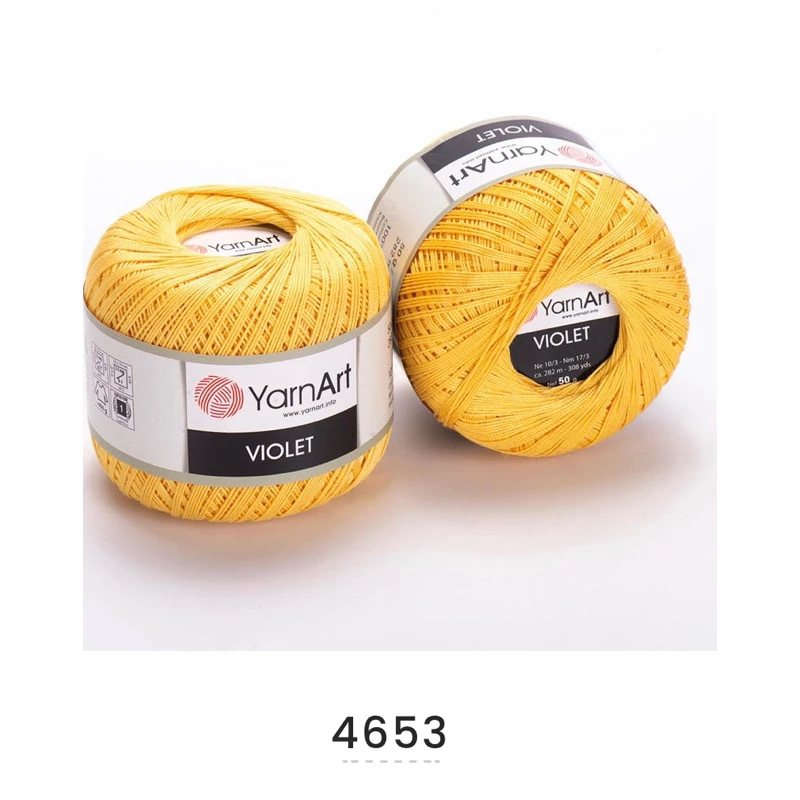 Sợi VIOLET được làm từ 100% cotton nên sản phẩm được làm từ loại sợi này không bị xù, không bị bai dão hay phai màu. Sợi VIOLET thích hợp móc áo kiểu, đầm, váy,.. hoặc cũng có thể chập đôi móc bikini. Loại sợi này có thể dùng làm những sản phẩm bé bé xinh xinh như hoa tai, cài tóc, đồ cho búp bê, hoặc có thể dùng để tatting.